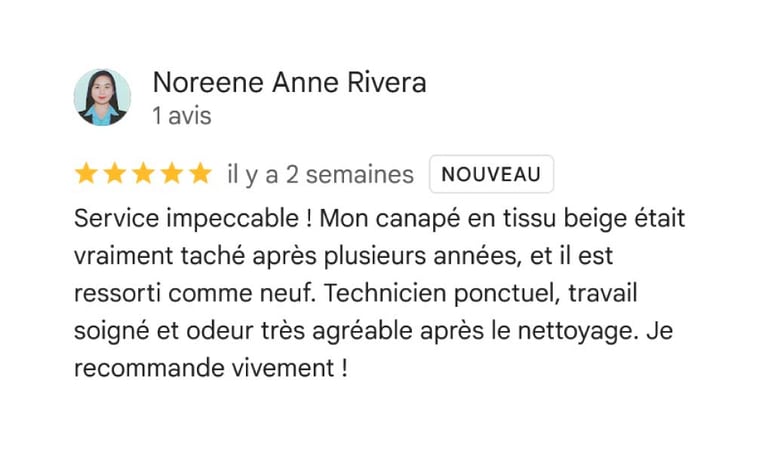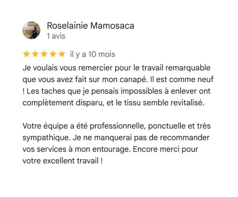 Ne laissez pas une tache gâcher l’apparence de votre canapé. Contactez Nettoyage Sofa pour un nettoyage professionnel qui redonne à vos meubles leur éclat d’origine. Que ce soit pour un nettoyage régulier ou pour une situation d’urgence, nous sommes là pour vous offrir un service de qualité supérieure et des résultats impeccables.